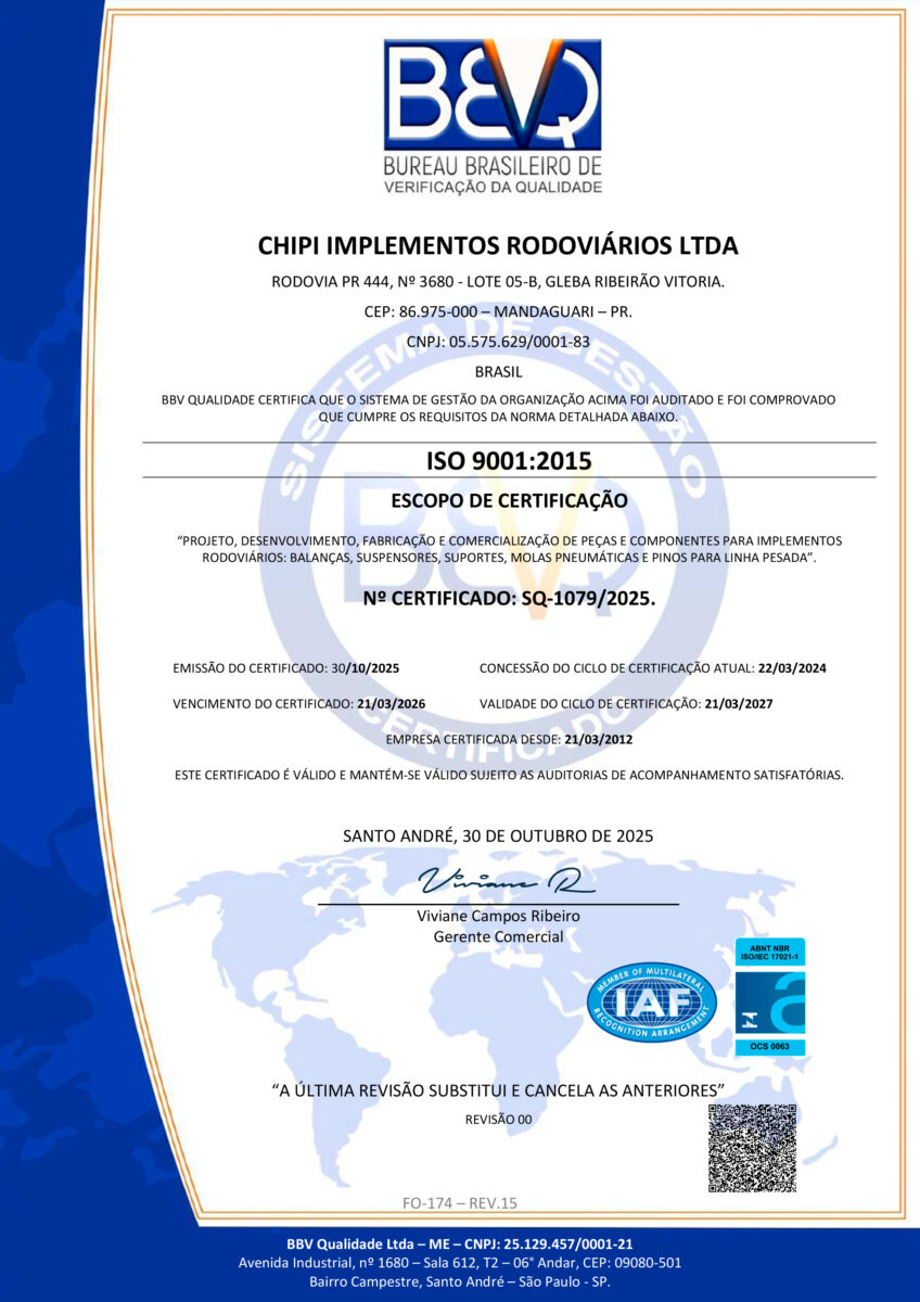 Certificado de Registro - Sistema de Gestão da Qualidade ISO 9001:2015